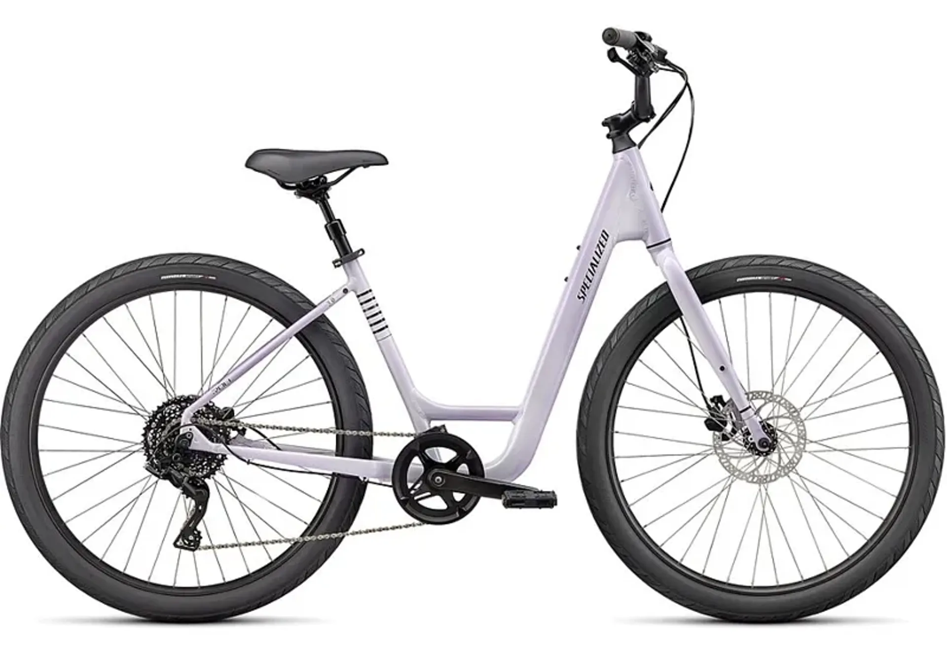 Question(s) answered about Specialized Roll 3.0 Low Entry Hybrid Bike in UV Lilac/Smoke/Black Reflective