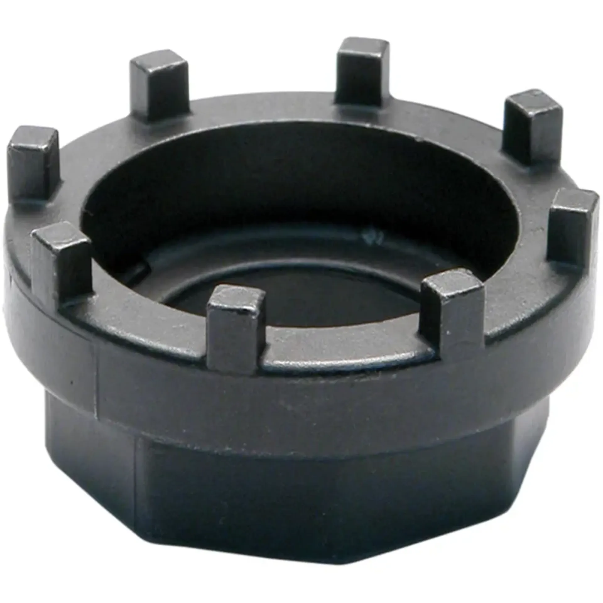A heavy duty, investment cast tool for installing and removing all Shimano Octalink and ISIS Drive Eight-notch Bottom Bracket Cups